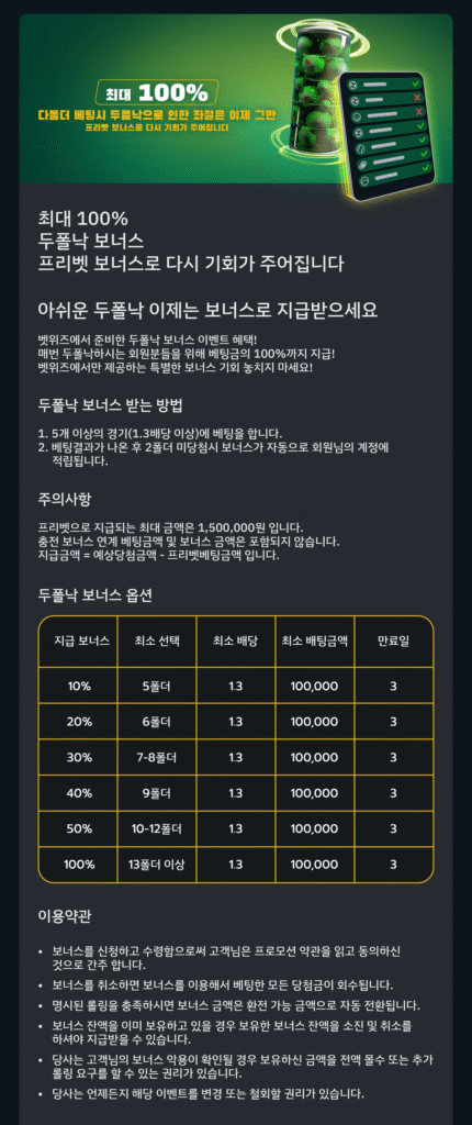 두폴낙 보너스 이벤트는 다폴더 베팅을 즐기는 이용자에게 추가 기회를 제공하는 구조로 운영되고 있습니다.