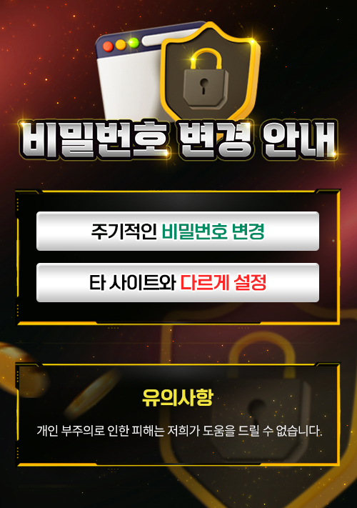 벳119에서도 사이트 이용과 관련된 몇 가지 안내 사항을 확인할 수 있습니다. 대표적으로는 계정 보안 관리 안내와 접속 관련 안내가 포함되어 있습니다.