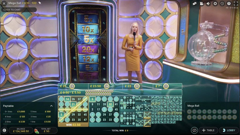 메가 볼은 빙고 형식을 기반으로 하지만, 단순히 특정 패턴을 완성하면 종료되는 구조는 아닙니다. 번호 추첨과 라인 완성 이후에도 메가볼 멀티플라이어 단계가 추가로 존재하며, 이 단계에서 최종 결과가 확정됩니다.