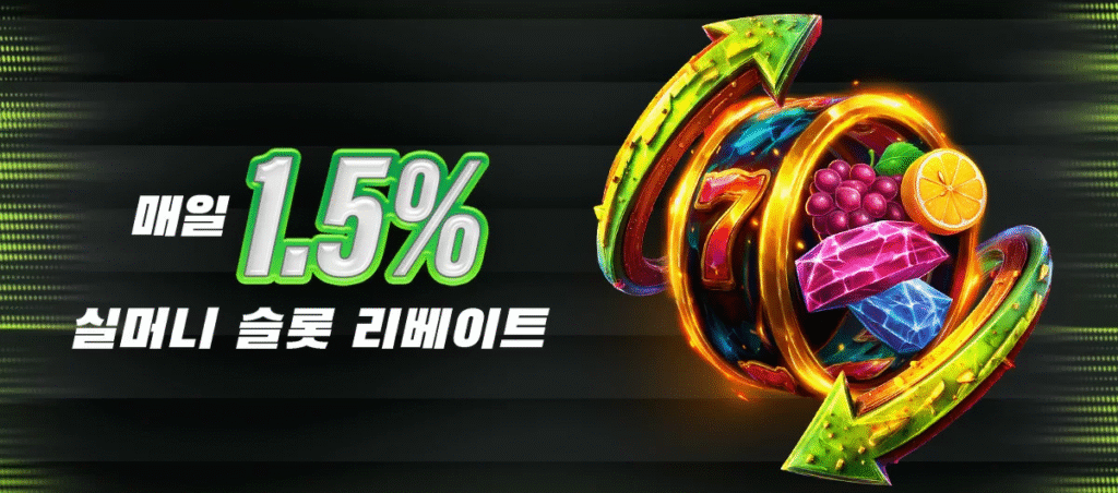 매일 슬롯 베팅 금액을 기준으로 실머니가 자동 적립되는 리베이트 구조입니다. 별도 신청 없이 정해진 시간에 지급됩니다.